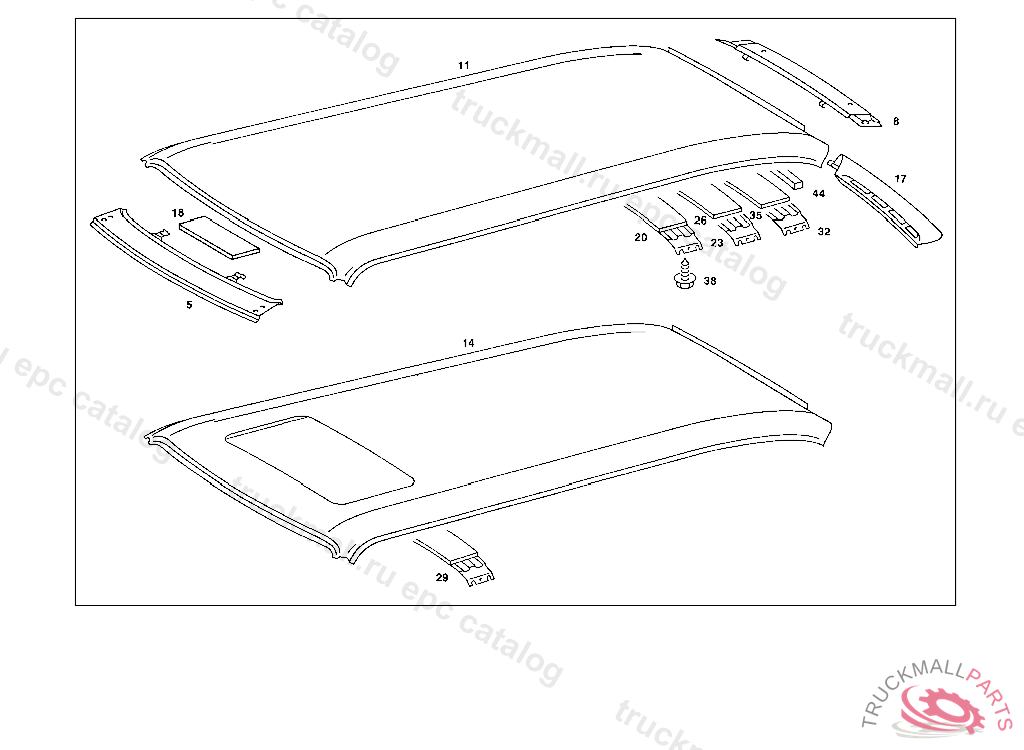 ROOF RAIL FRONT, CARE SHOULD BE TAKEN TO USE THE ILLUMINATED VANITY MIRRORS ONLY WITH THE REQUIRED RECESS IN ROOF RAIL