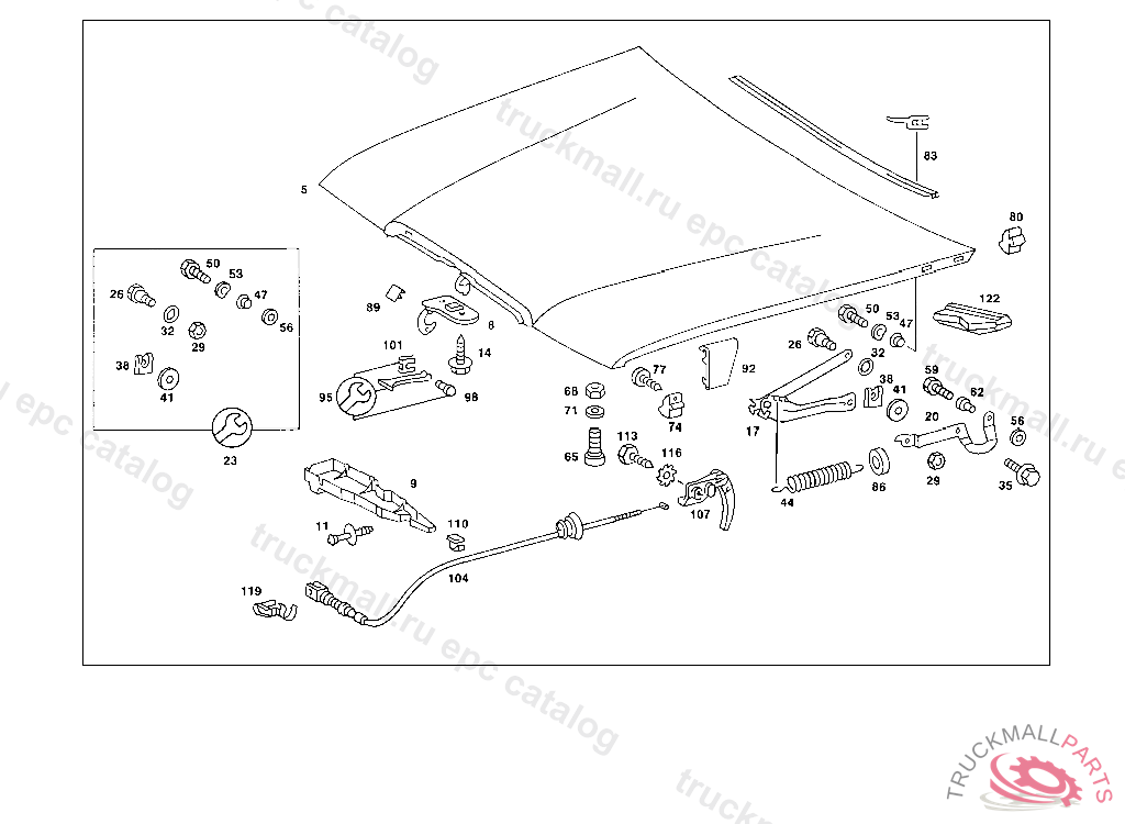 ENGINE HOOD CATCH UPPER PART, 000 099789 003 049989 007 042131 083 000682 086 000399 093 000284 102,103 080283 105 100719 183 000799 190 000712