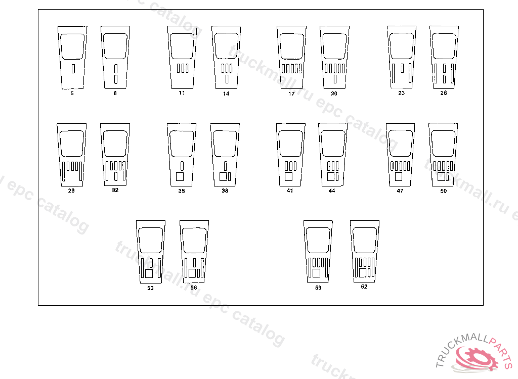 COVERING QUADRUPLE ELECTR. WINDOW REGULATOR,FADER CONTROL,LEFT & RIGHT SEAT HEATERS