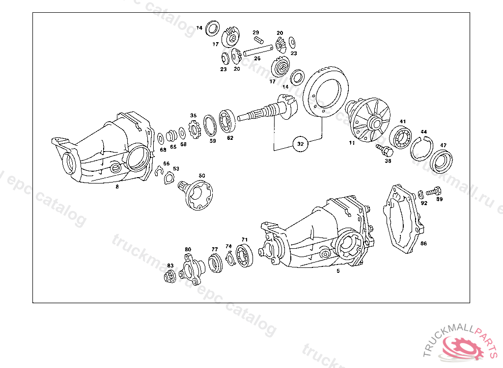 DIFFERENTIAL GEAR LESS RING GEAR AND PINION, REAR AXLE HOUSING WITH DIFFERENTIAL,LESS SIDE BEARING CABS 003 103239 007 087551 086 007106 093 008992 102,103 240183 105 231729 183 015395 190 021957 193 002093 200 027295 280 000777 283 003632