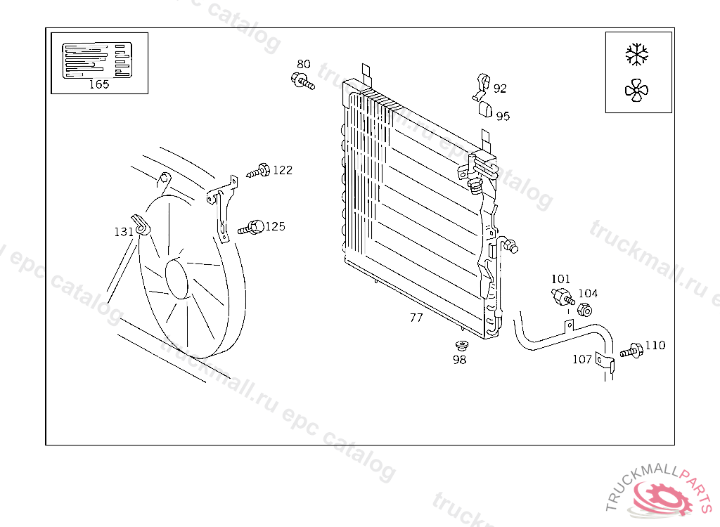 INTERMEDIATE LAYER CONDENSER TO STIFFENING AND TO FRONT CROSS MEMBER