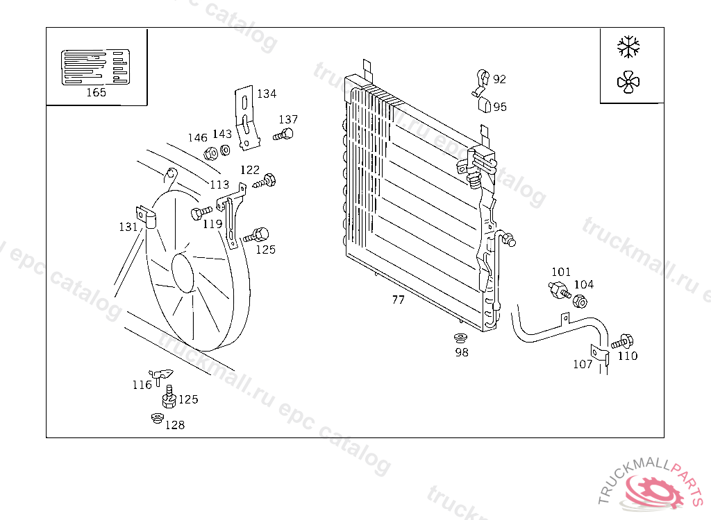 INTERMEDIATE LAYER CONDENSER TO STIFFENING AND TO FRONT CROSS MEMBER
