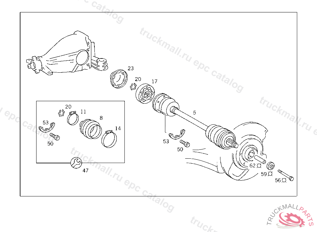 REPAIR KIT AXLE SHAFT,INSIDE BOOT, FOR USE WITHOUT ACCELERATION SKID CONTROL (A S R) C 241286 FROM IDENT. NO. C 241286 TO C 258983 MEASURE THE WIDTH OF THE HOSE CLAMP. WITH A WIDTH OF 9 MM USE RANGE OF PARTS UP TO IDENT NO C 241286 WITH A WIDTH OF 7 MM USE RANGE OF PARTS FROM IDENT NO. C 241287