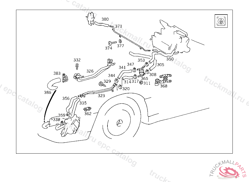 HOSE FROM THERMOSTAT TO PIPE LINE, F 155734 EXCEPT CODE 808 ALSO INSTALLED IN VEHICLE FROM F 155735 WITH CODE 807
