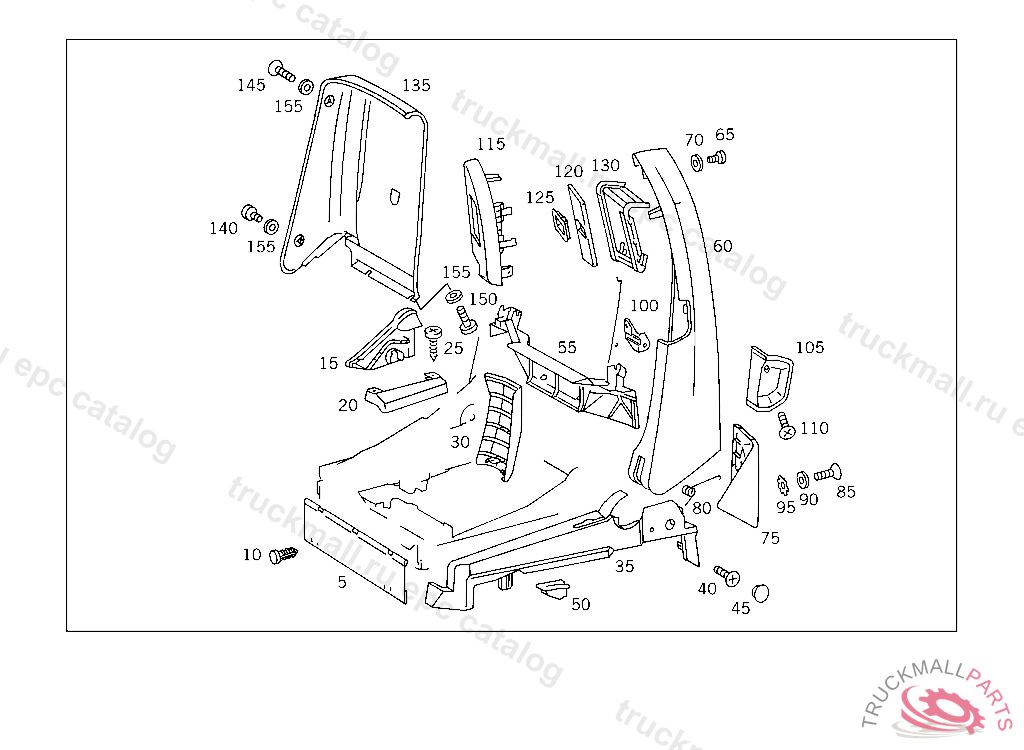 COVERING ABOVE OUTSIDE LOCKING MECHANISM, RIGHT SEAT, FROM CHASSIS NEW EQUIPMENT 6/91 F 038363 AUSTRALIAFROM MODEL YEAR'92 - F 037641 ALSO INSTALLED ON F 025627NO.9051I NO.5076I NO.8316I NO.8F20I NO.8F30I NO.6122I NO.3112I NO.7101I IIIIIIII F 125157 EXCEPT CODE 806 ALSO INSTALLED IN VEHICLE FROM F 125158 WITH CODE 805