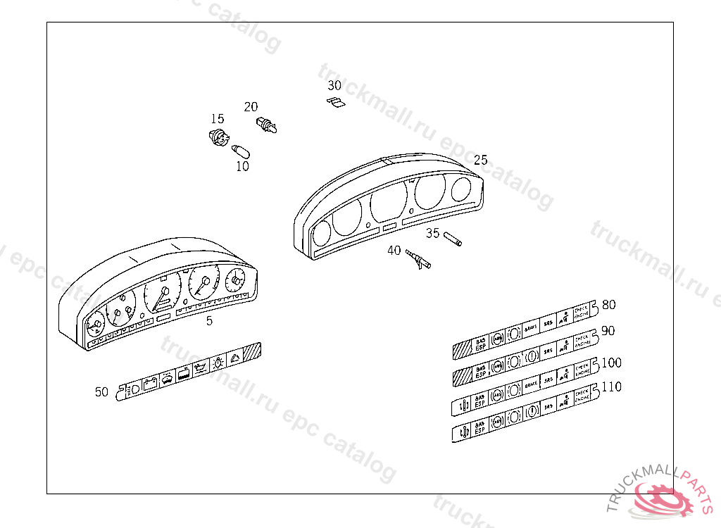 INSTRUMENT CLUSTERSILVER ARROW EDITION, NOTE!!IF NECESSARY ORDER FRAME USING CODE ES2 FOR COLOURED INSTRUMENT CLUSTERSF 196663 EXEPT FOR VEHICULES WITH CODE 800 NO: 9106