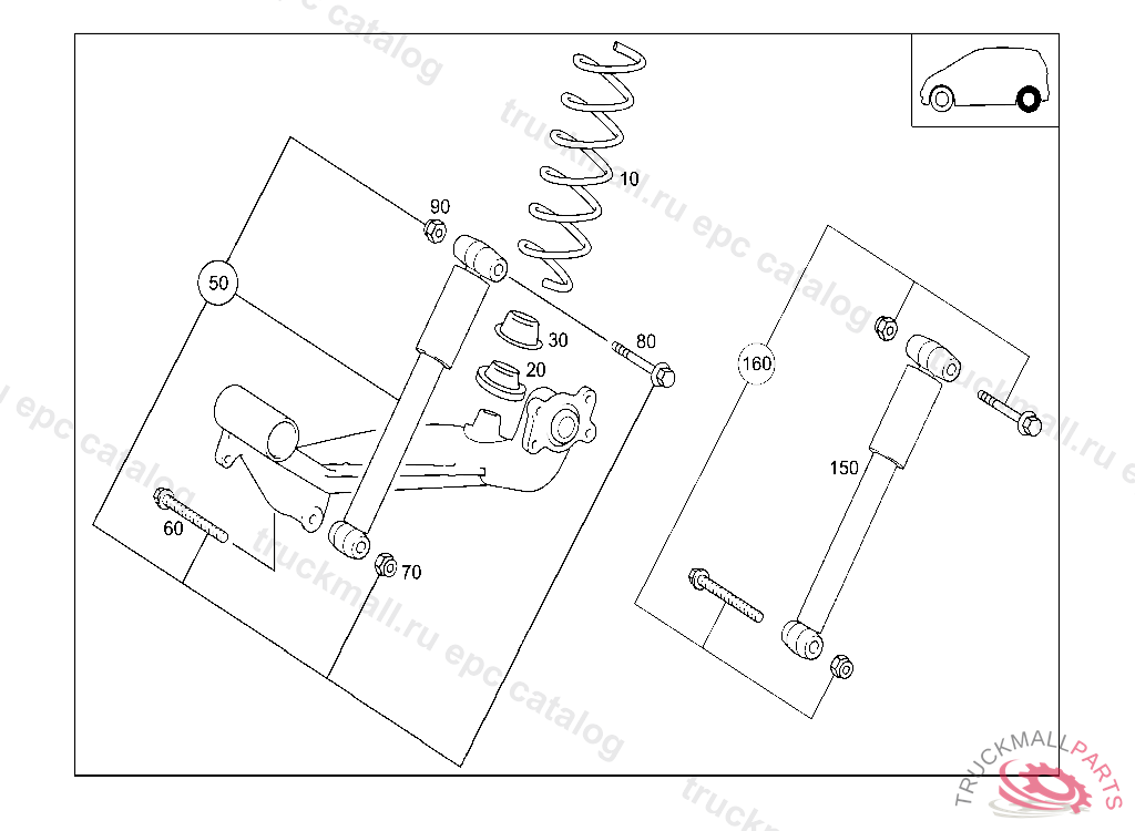 SHOCK ABSORBER REAR, J 70327220011025 FASTENING PARTS NOT PART OF DELIVERY SPEC., PLEASE ORDER SEPARATELY