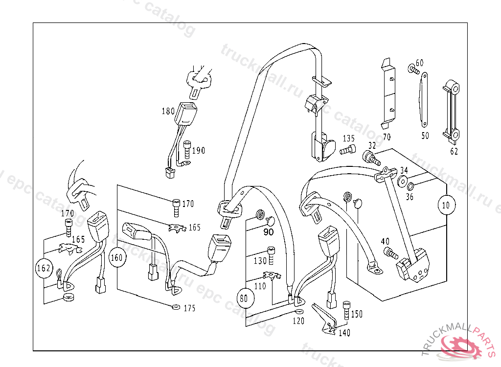 SEAT BELT REAR SEAT BENCH,CENTRAL