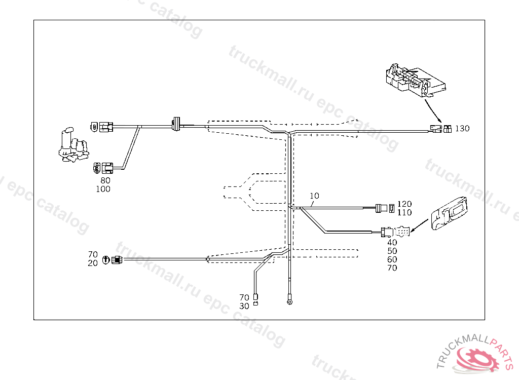 WIRING HARNESS REAR SPACE AIR CONDITIONER, A 19148120010630801 ORDER OBJECT NUMBER WITHOUT ES1 UP TO IDENT. NO. A368543 ORDER OBJECT NUMBER WITH ES1 98 AS OF IDENT. NO. A368544