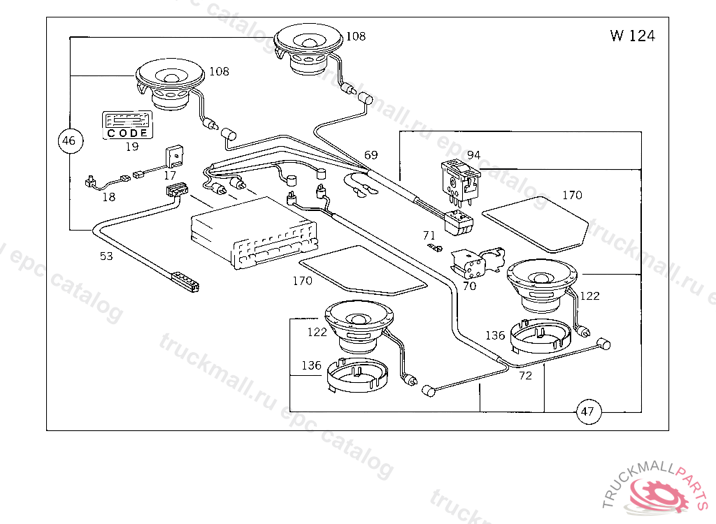 ELECTRIC CABLE FRONT AND REAR LOUDSPEAKERS AND FADER CONTROL, 124 A 529701 F 047039 126 A 351457 201 A 393912 F 391301