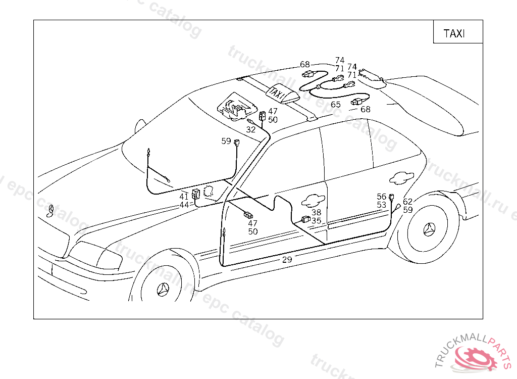 ELECTRIC CABLE READING LAMP IN THE REAR TAXI, A 519673 F 619720 EXCEPT CODE 808 ALSO INSTALLED IN VEHICLE FROM A 519674, F 619721 WITH CODE 807