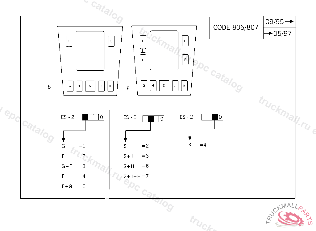 COVERING ATTENTION! PLEASE STATE THE ADDITIONAL CODE ES2,SEE ILLUSTRATION:, A 344661 F 331441 EXCEPT CODE 805 ALSO INSTALLED IN VEHICLE TO A 344660, F 331440 WITH CODE 806 A 519673 F 619720 EXCEPT CODE 808 ALSO INSTALLED IN VEHICLE FROM A 519674, F 619721 WITH CODE 807