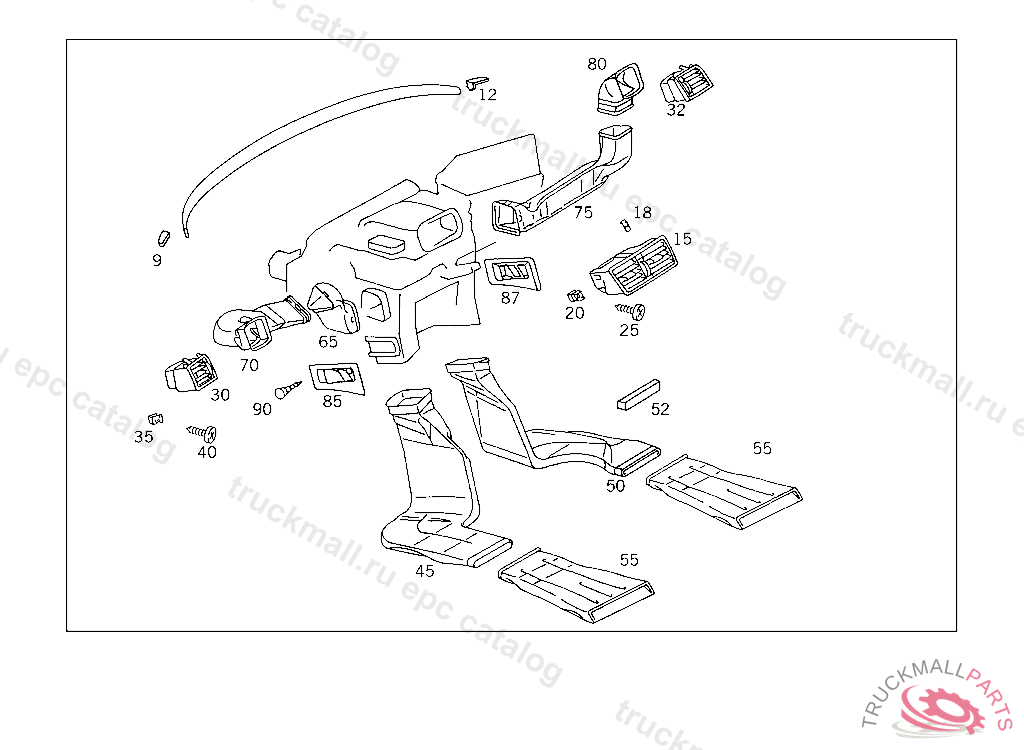 NOZZLE SIDE PANE DEFROSTING,INSTRUMENT PANEL, LATERAL RIGHT ELEGANCE, A 230746 F 047998 NO.9115 INO.5200 INO.8407 INO.1427 INO.3550 INO.7131 INO.9115INO.9115INO.9115INO.9115I