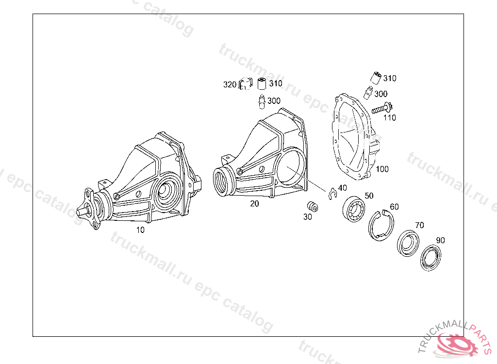 AXLE HOUSING REAR AXLE CENTER ASSEMBLY W/O FLANGE 1:3.27, F 27420020020330 F 33917920020830 PART IS ONLY OR ALSO SUPPLIED AS RECONDITIONED PART IMPORTANT: FROM IDENT: A 358180, F 169533, R 056937 UP TO IDENT: A 436252, F 339180, R 077679 MIXED INSTALLATION POSSIBLE NOTE REMOVED AXLE SHAFT, NOT VALID WITH BOLTED AXLE SHAFT