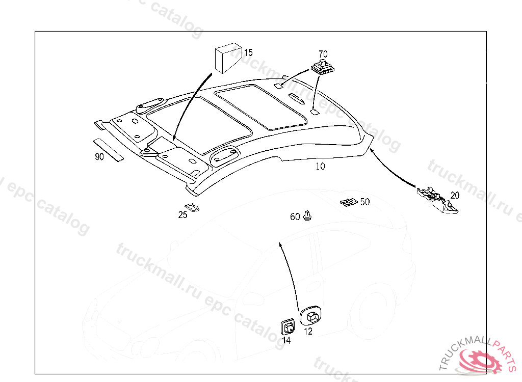 BRACKET REAR HEADLINER, E 02000020070101 A 97002220070531