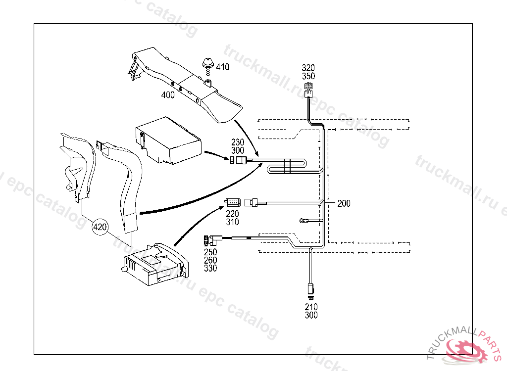 WIRING HARNESS RADIO CHAMBER C,, ORDER OBJECT NUMBER WITHOUT ES1 UP TO IDENT. NO. A535915 ORDER OBJECT NUMBER WITHOUT ES1 UP TO IDENT. NO. F433730 ORDER OBJECT NUMBER WITH ES1 98 AS OF IDENT. NO. A535916 ORDER OBJECT NUMBER WITH ES1 98 AS OF IDENT. NO. F433731
