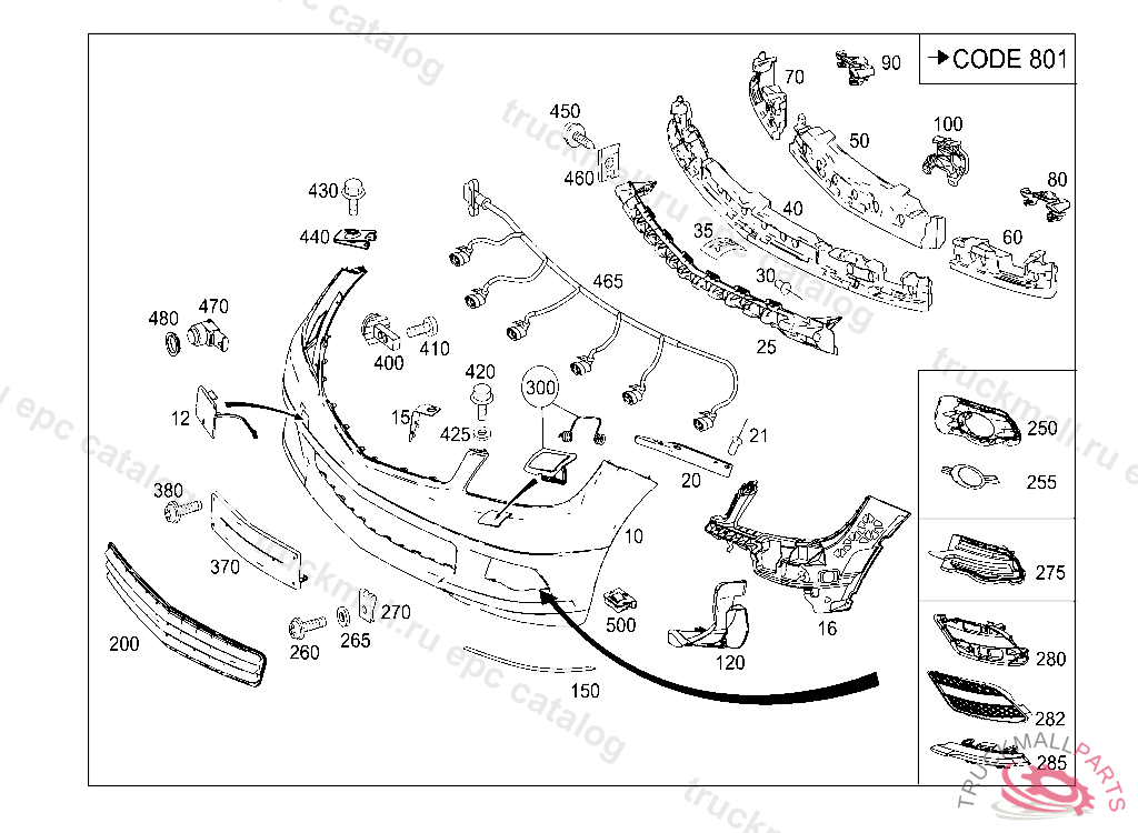 PANELING FRONT BUMPER, A 11984920080109 L 00481320071231 V 00024120071231 F 10701120080102 L 10000020090901