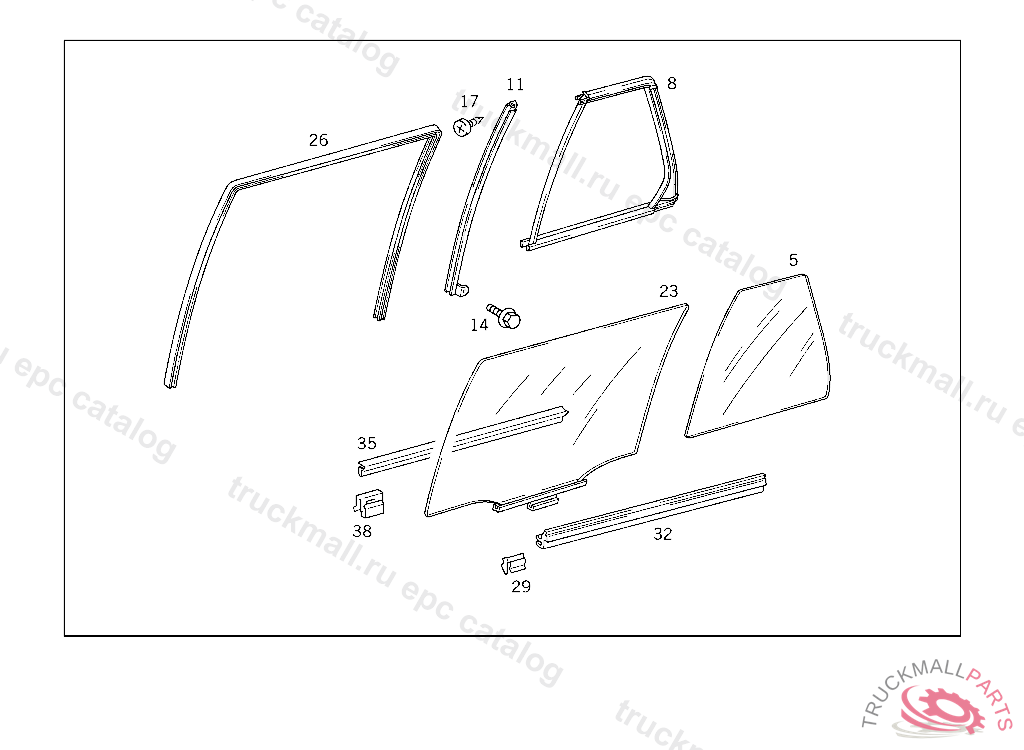 WINDOW STAYBAR RIGHT REAR DOOR,BETWEEN CRANK OPERATED WINDOW AND FIXED WINDOW