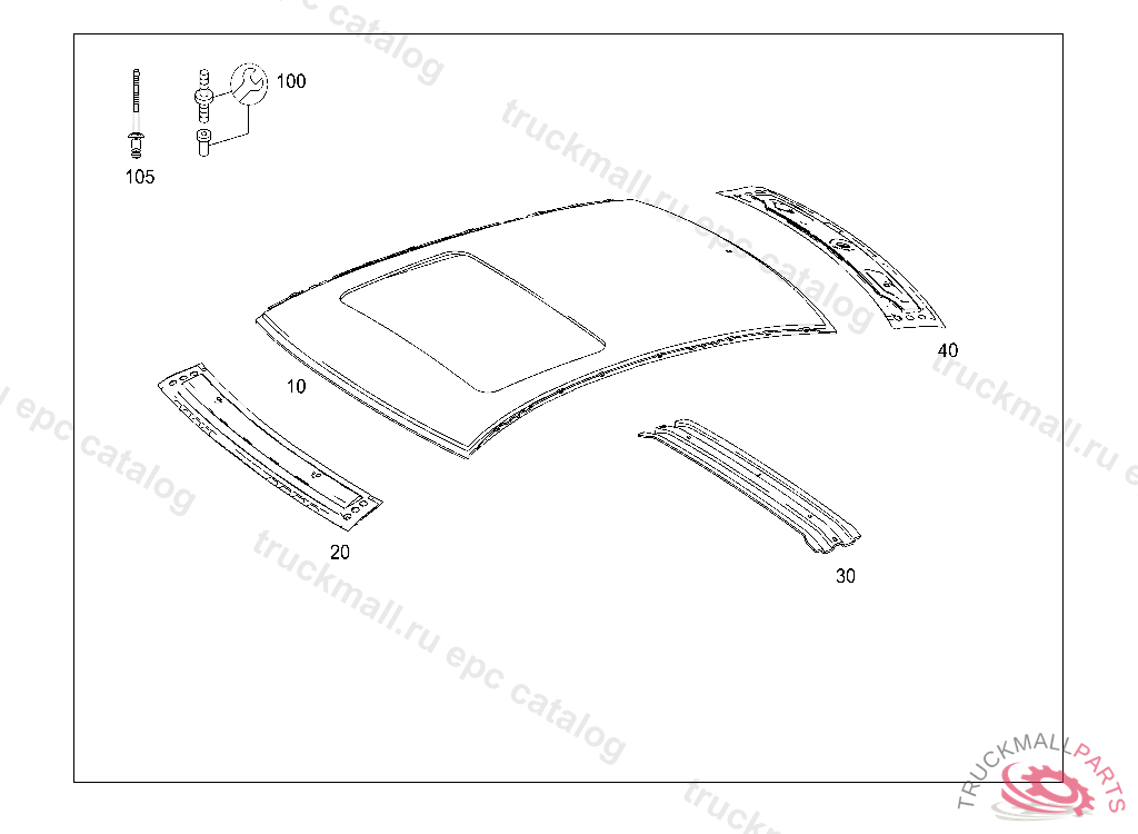ROOF PANELING W/O SLIDING ROOF CUTOUT, FIRST EXHAUST STOCK OF OLD PARTS UP TO IDENT NO. A 39999920100609801, Replaced By: A2126570909