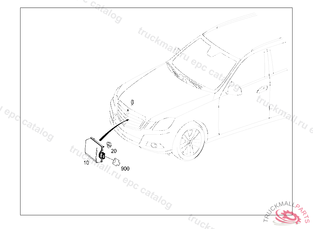 CONTROL UNIT DISTANCE RADAR, BEHIND RADIATOR GRILLE, PART MUST BE CHECKED AFTER INSTALLATION FOR CURRENT FLASHWARE