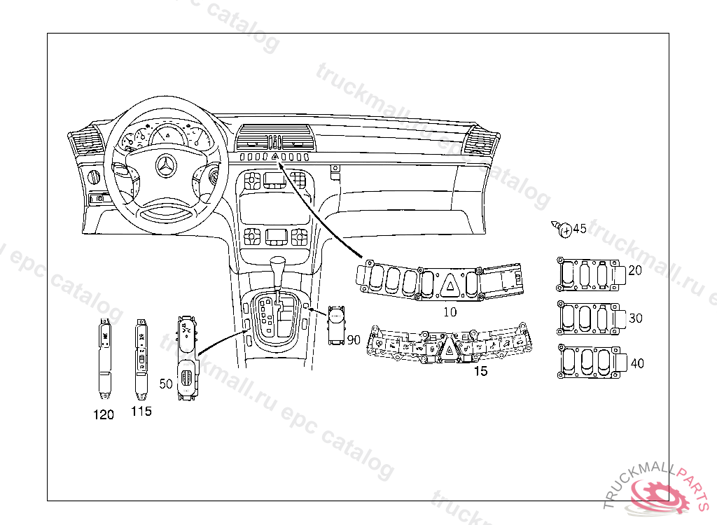 SWITCH ANTITHEFT ALARM SYSTEM/PARKTRONIC/REAR WIN. ROLLER BLIND/INT. MOTION SENSOR