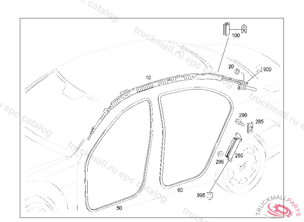 PLASTIC SECTION CABLE HARNESS TO ROOF RAIL