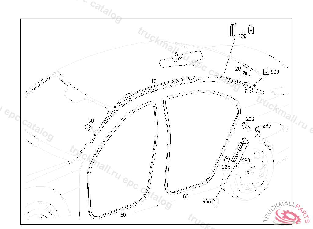 PLASTIC SECTION CABLE HARNESS TO ROOF RAIL