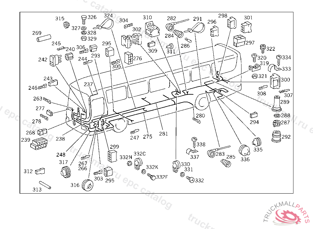 CABLE HARNESS MAIN CABLE,REAR END, NOT FOR USE WITH MERCEDES-BENZ BODY FROM IDENT NO. 038229 FOR USE WITH MERCEDES-BENZ BODY FROM IDENT NO. 038391,ALSO INSTALLED ON