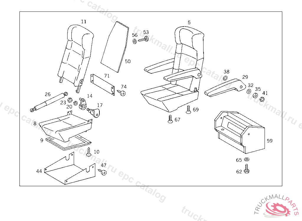 FOLDING SEAT (CO-DRIVERS SEAT), DETERMINE COVER FABRIC VIA VEDOC "NFC 5117"