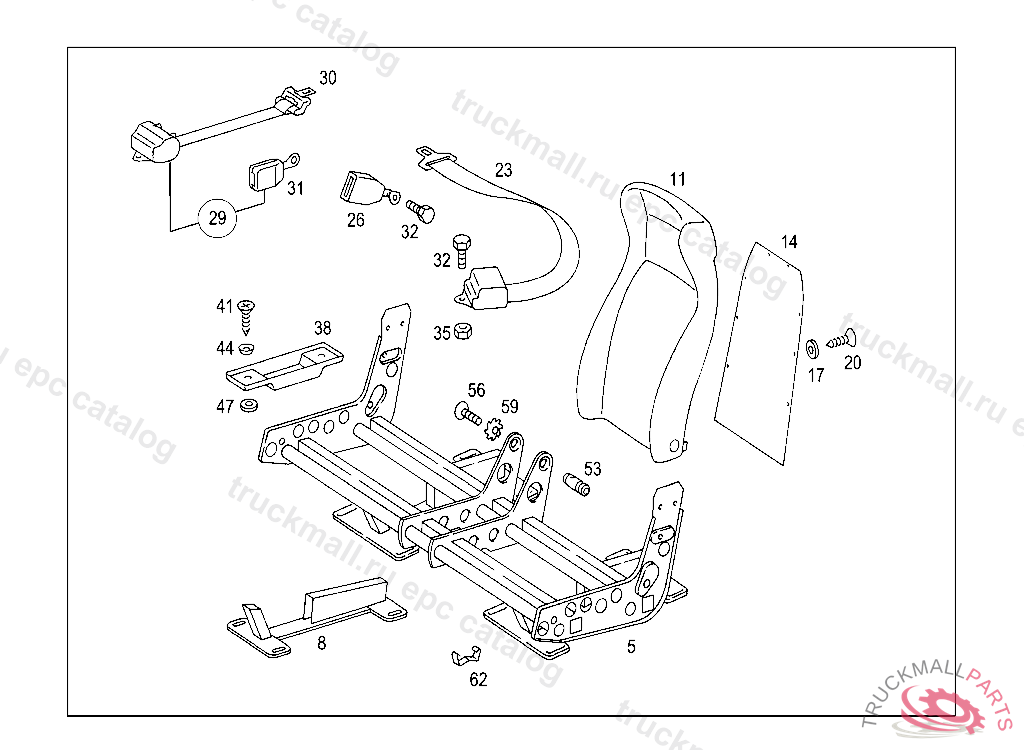 SEAT FRAMEWORK RIGHT,224572, 224977INO.7C52I I I II