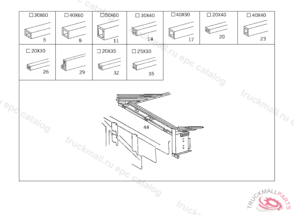 TUBE BEHIND REAR AXLE, TO BE ADAPTED DURING ASSEMBLY XB373 612 61 18 RECTANGULAR TUBE 40 X 40 X 2,0 X 2386 MM