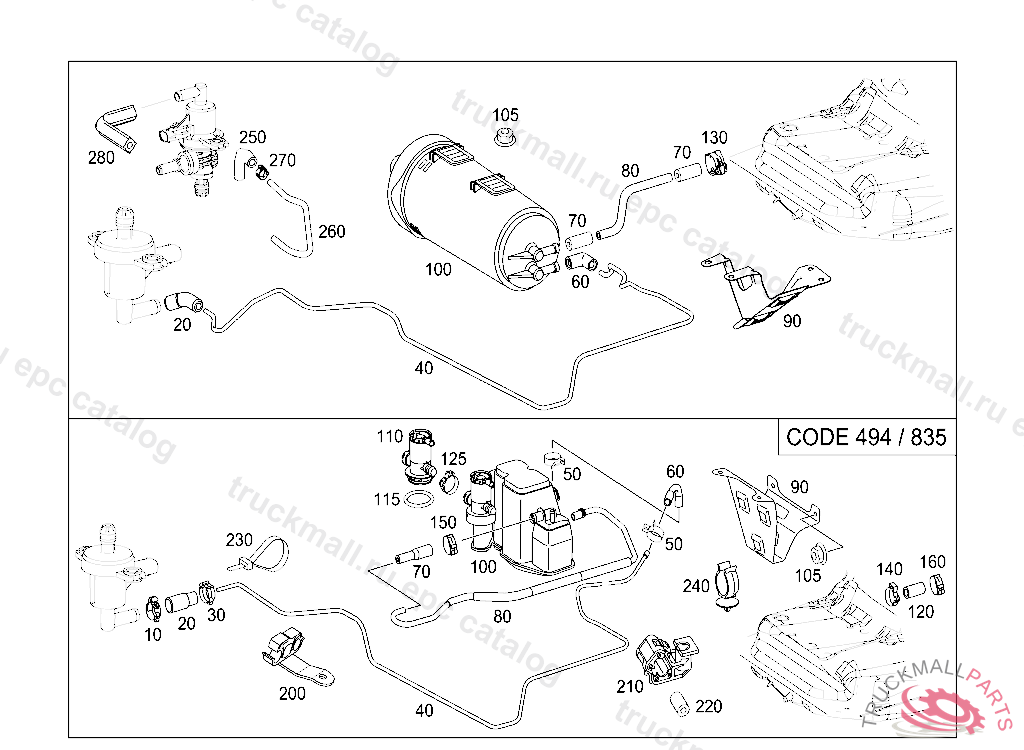 BREATHER PIPE FROM ACTIVATED CHARCOAL FILTER TO REGENERATION VALVE, FIRST EXHAUST STOCK OF OLD PARTS UP TO IDENT NO. J 49237820070615, Replaced By: A1694704064
