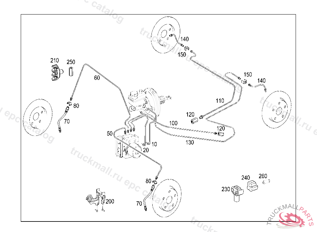 BRAKE LINE FROM MASTER CYLINDER,CONNECTION "D2" TO HYDRAULIC UNIT,CONNECTION: "D2", Replaced By: A1694203626