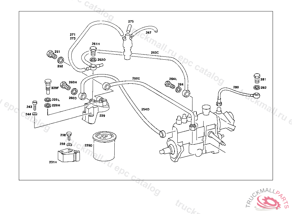 FUEL HOSE FROM NO.1 NOZZLE HOLDER TO FUEL RETURN LINE 245 MM, ORDER BY THE METER