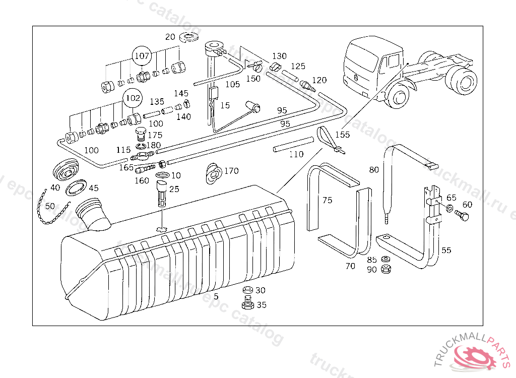 FUEL TANK , FIRST EXHAUST STOCK OF OLD PARTS UP TO IDENT NO. K 169122, Replaced By: A6524700101, +001A0005409917, +001A0115426017