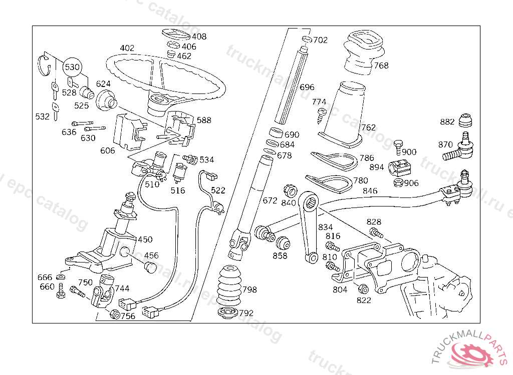 STEERING SHAFTLEMFOERDER, USED WITH SHORT MERCEDES-BENZ CAB