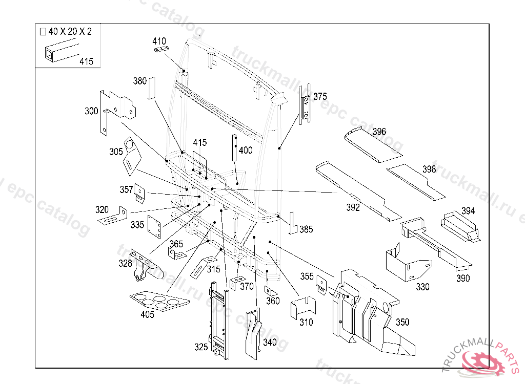 RECTANGULAR TUBE , A 628 632 18 40 RECTANGULAR TUBE 40 X 20 X 2 X 1590 MM TO BE ADAPTED DURING ASSEMBLY