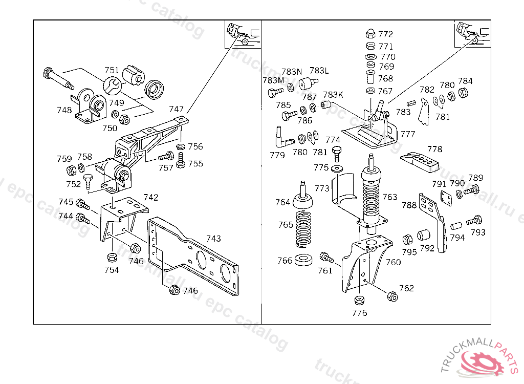 REPAIR KIT CAB SUSPENSION,FRONT, FOR USE WITH SHORT MERCEDES-BENZ CAB5 764324