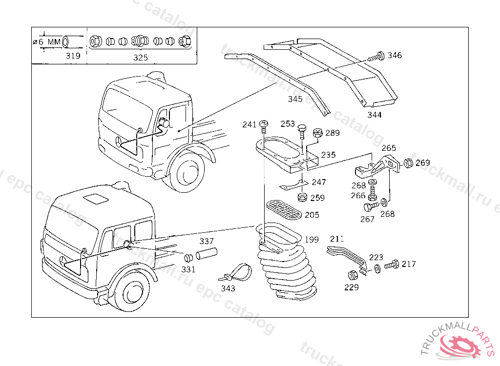 COVER ENGINE COVERING, FOR USE WITH SHORT MERCEDES-BENZ CAB