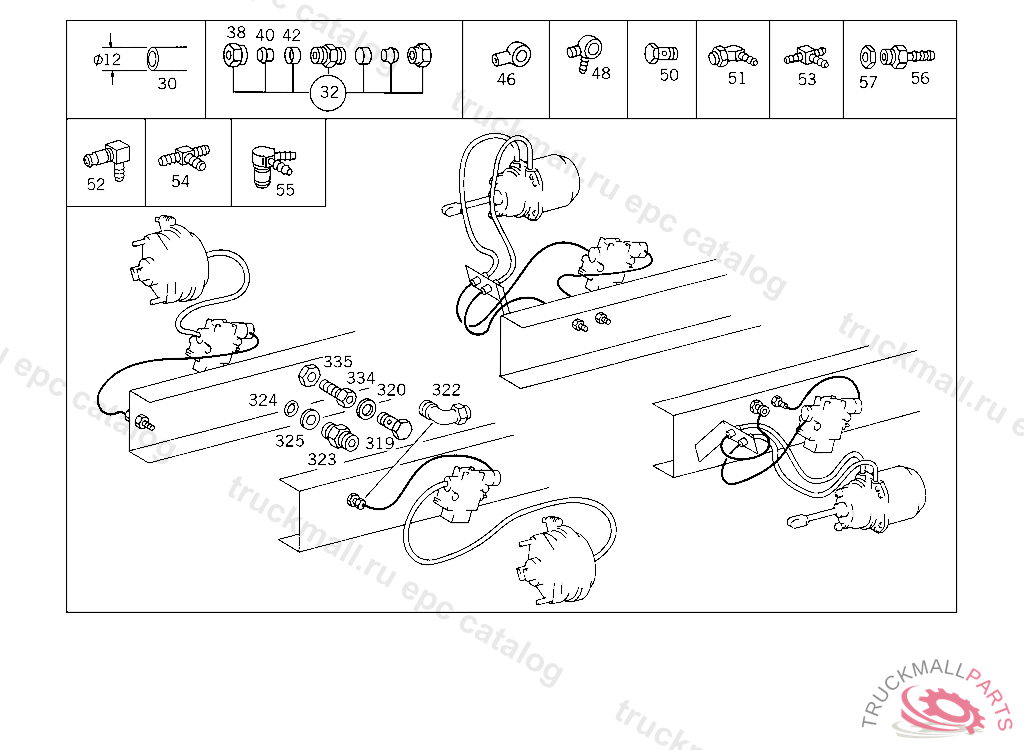 CROSS FITTING AIR RESERVOIRS I AND II,4 821954 620.415 UP TO CHASSIS 5 014668 620.416 UP TO CHASSIS 5 000515 620.417 UP TO CHASSIS 4 972023