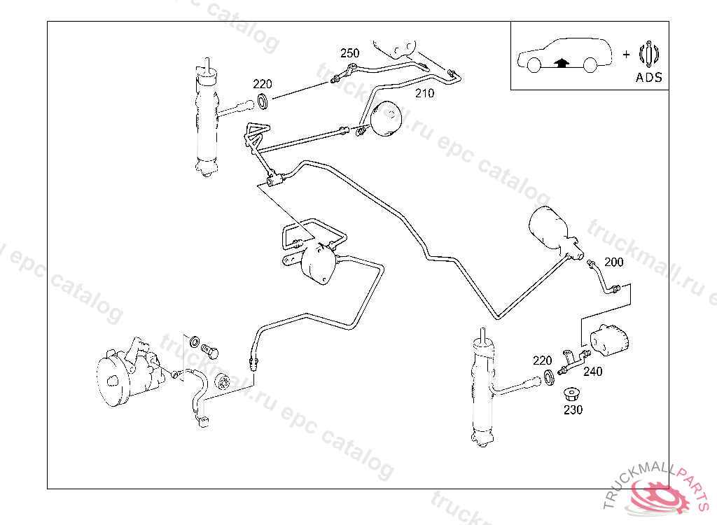 LINE FROM DAMPING VALVE TO HYDROPNEUMATIC SPRING LEG,REAR RIGHT