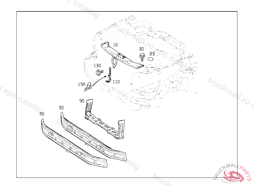 SUPPORT RADIATOR SUPPORT, ORDER ADDITIONALLY FOR USE WITH HIGH-MOUNTED RADIATOR: 1 X 210 620 00 72 FRONT CENTRAL STIFFENING 2 X 210 628 08 31 ADAPTER, RADIATOR MOUNTING, USED WITH HIGH MOUNTED RADIATOR 4 X 201 990 02 50 NUT ORDER ADDITIONALLY FOR USE WITH ELECTRONIC STABILITY PROGRAMM (ESP) CODE 472 1 X 210 620 76 14