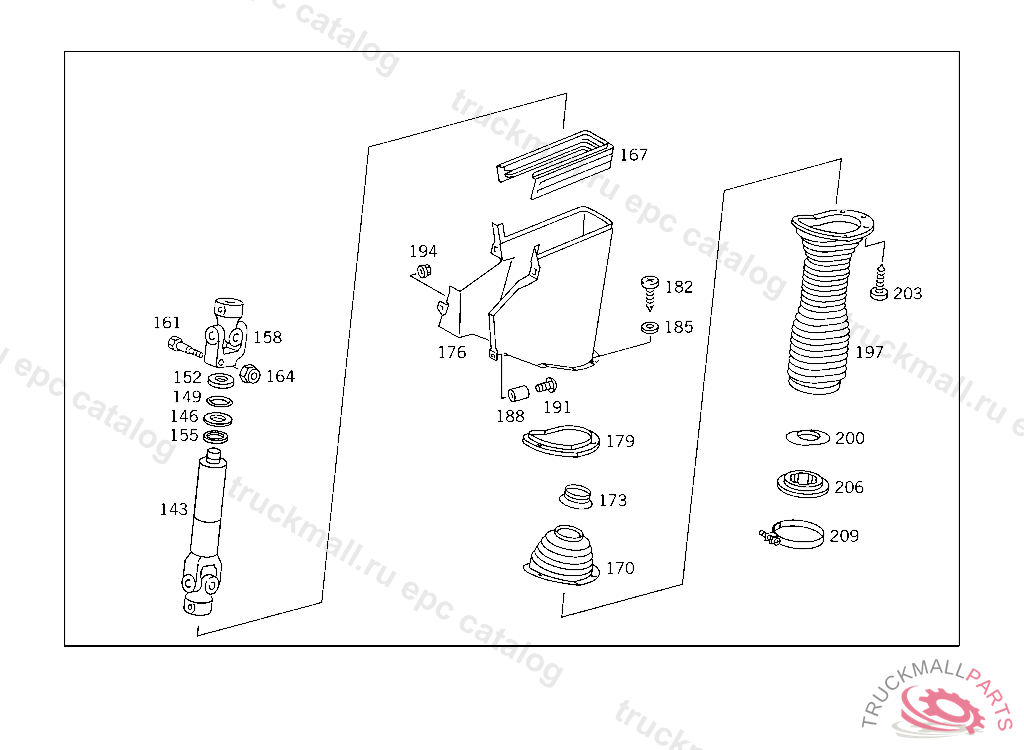 STEERING SHAFTLEMFOERDER, USED WITH SHORT MERCEDES-BENZ CAB