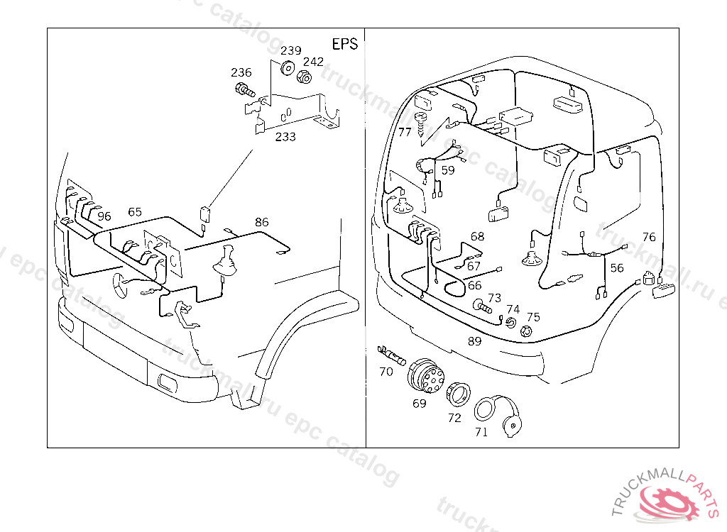 ELECTRIC CABLE FROM CHASSIS/CAB PLUG CONNECTION TO CONTROL AND SENDER UNIT EPS,5 957780K 062140