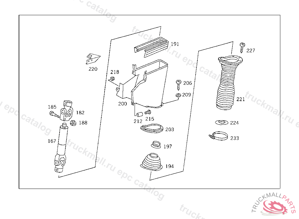 STEERING SHAFTLEMFOERDER, USED WITH SHORT MERCEDES-BENZ CAB