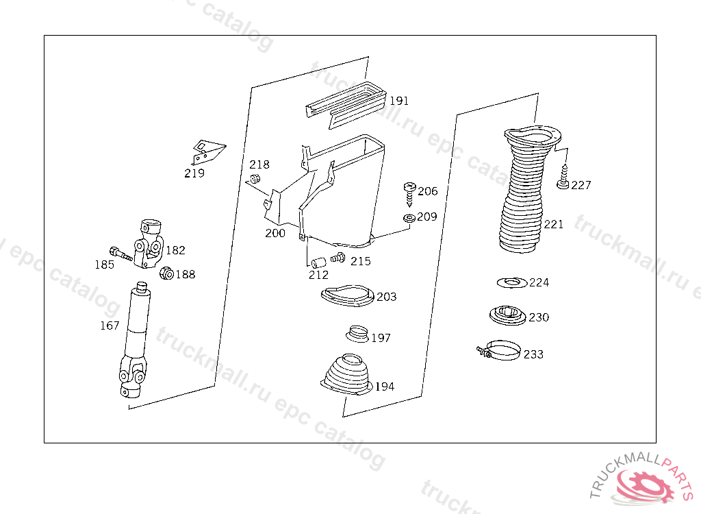 STEERING SHAFTLEMFOERDER, USED WITH SHORT MERCEDES-BENZ CAB