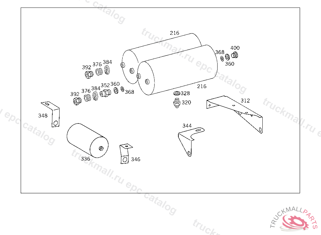 RESERVOIR COMPRESSED AIR 30 L, TO VOSS 232,5 9363665 812731 FOR VEHICLES WITH VOSS 230 CONNECTOR: ADD. MOUNT FITTING "A 004 997 82 72" WITH O-RING "A 000 987 04 46" AND THRUST RING "A 000 997 02 03" TO AIR RESERVOIR