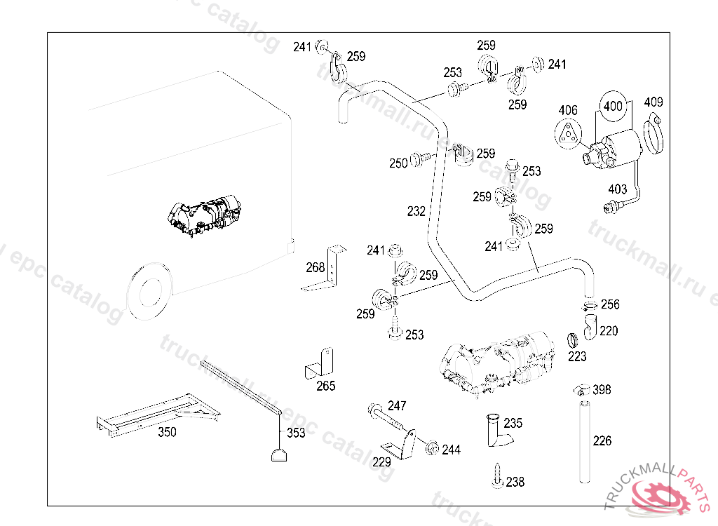 CLAMP DELIVERY AND SUCTION LINES TO ENGINE, FRONT