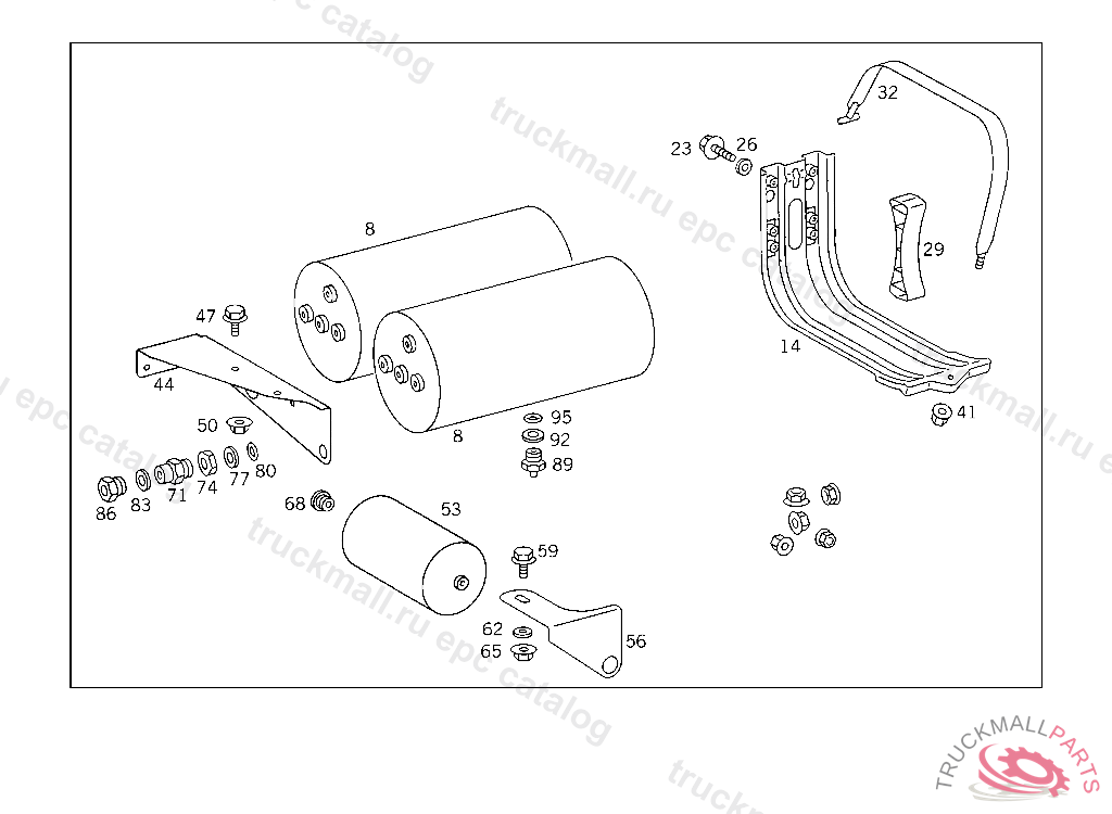 RESERVOIR COMPRESSED AIR 30 L, TO VOSS 232,5 9363665 812731 FOR VEHICLES WITH VOSS 230 CONNECTOR: ADD. MOUNT FITTING "A 004 997 82 72" WITH O-RING "A 000 987 04 46" AND THRUST RING "A 000 997 02 03" TO AIR RESERVOIR