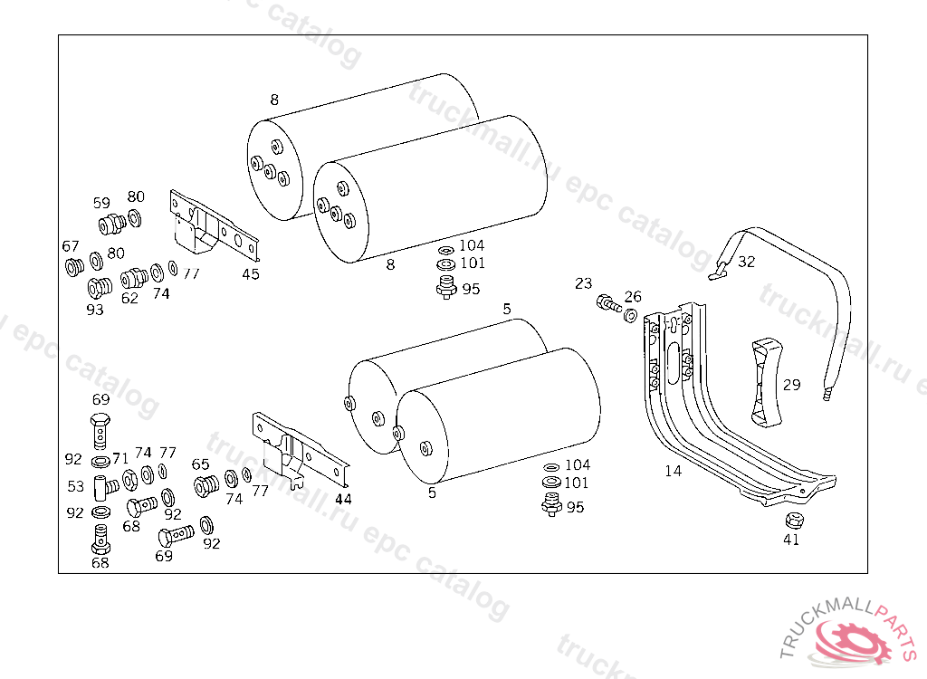 RESERVOIR COMPRESSED AIR 30 L, TO VOSS 232,5 9363665 812731 FOR VEHICLES WITH VOSS 230 CONNECTOR: ADD. MOUNT FITTING "A 004 997 82 72" WITH O-RING "A 000 987 04 46" AND THRUST RING "A 000 997 02 03" TO AIR RESERVOIR